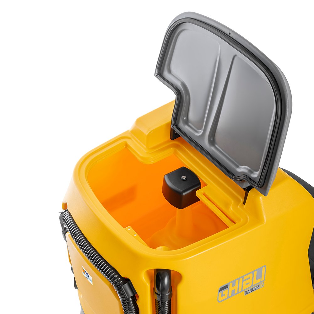 Vairuojama grindų plovimo-džiovinimo mašina dideliems sandėliams, logistikos centrams ir gamybai.